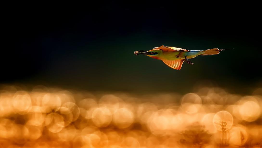 | I found a colony of Blue tailed bee eaters couple of years ago in a riverbank .It is always beautiful to get the bird in backlight as the colour of the wings looks complete different. That evening, the light was extremely good ..the birds sometimes flue very close to the shallow water body besides the river… with a high shutter speed I was able to capture this shot where the reflection of evening light creates a magical effect … Location :- Damodar River bank, Burdwan, West Bengal, India Date taken :- 14/05/16, at 4.07 p.m |