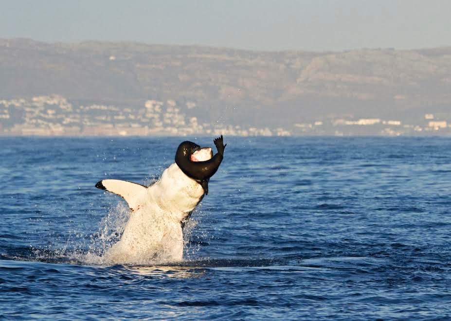 | A great white shark takes a panicked seal in False Bay, South Africa. |